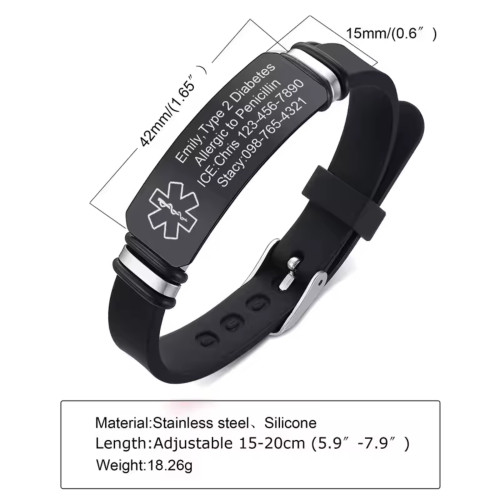 Our collection includes health identification bracelets, necklaces, medical ID tags, and various other types of medical ID jewelry. We understand the significance of these accessories for people managing health conditions such as diabetes, epilepsy, allergies, Alzheimer's, and others.