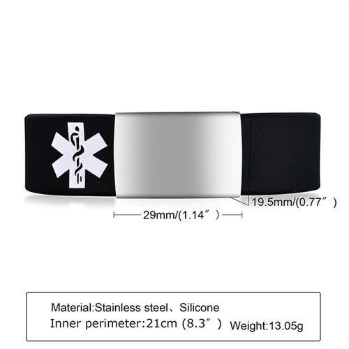 Medical ID Bracelet with Silicone Rubber and Stainless Steel Plate