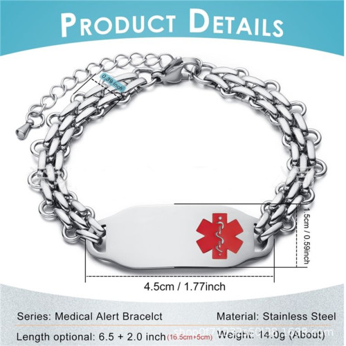 Designed with both safety and elegance in mind, this women’s medical alert bracelet combines a sleek, feminine style with essential functionality. Crafted from premium stainless steel, it offers a polished look while remaining durable, waterproof, and tarnish-resistant—perfect for everyday wear.